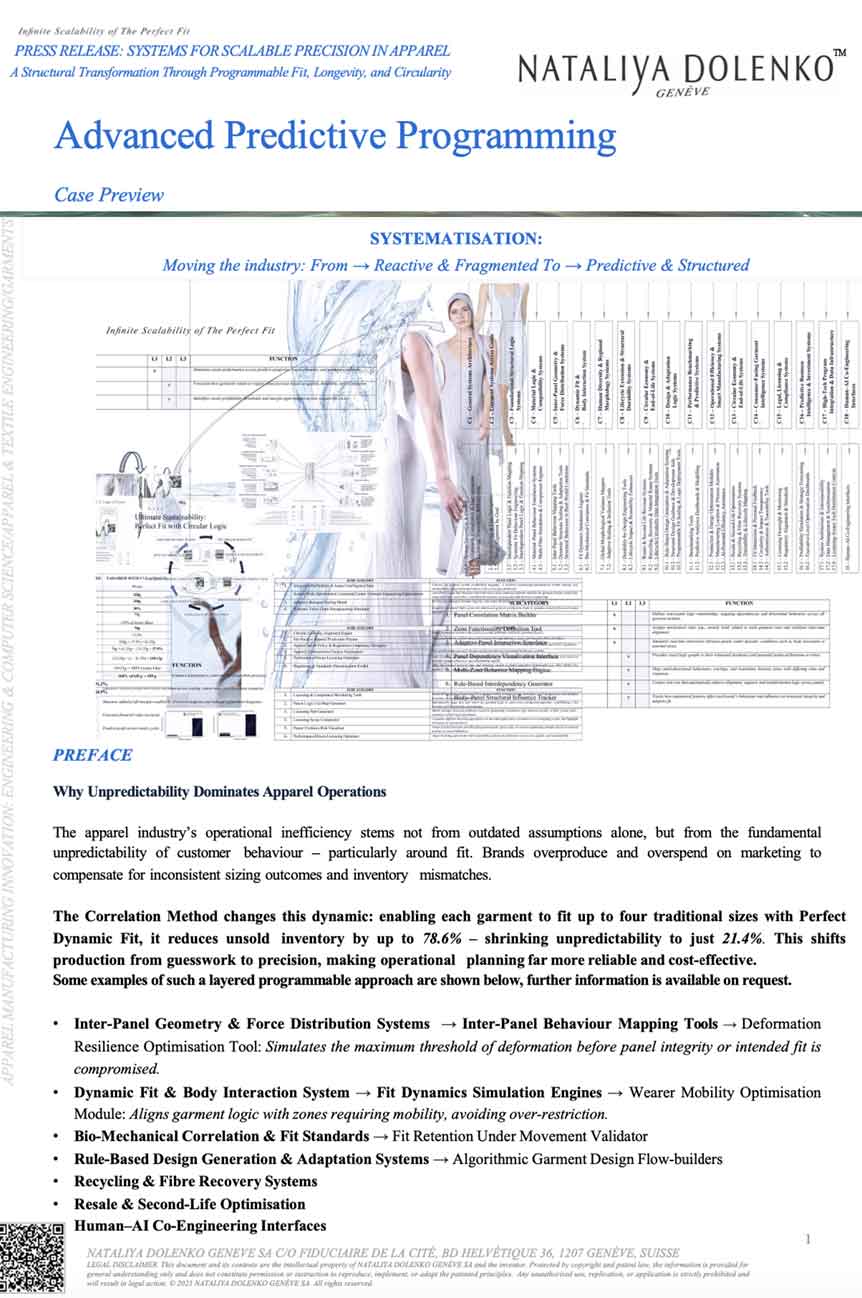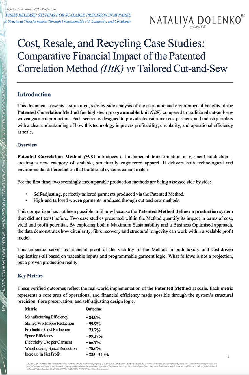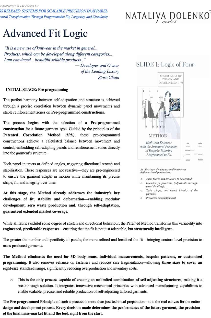 Adv. FIT Architecture for Integrated Apparel System CORRMETH System – Structural FIT Logic Executive Summary Fit Impact Press Release Annex 1 Annex 2 Annex 3 Annex 4 Annex 5 Annex 6 Annex 7 Annex 8 Annex 9 Annex 10 Shaping the Future Luxury Fibre Preservation Optimisation